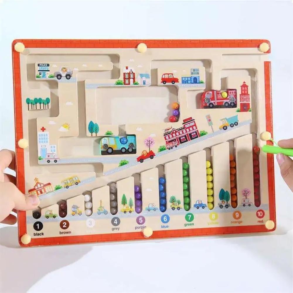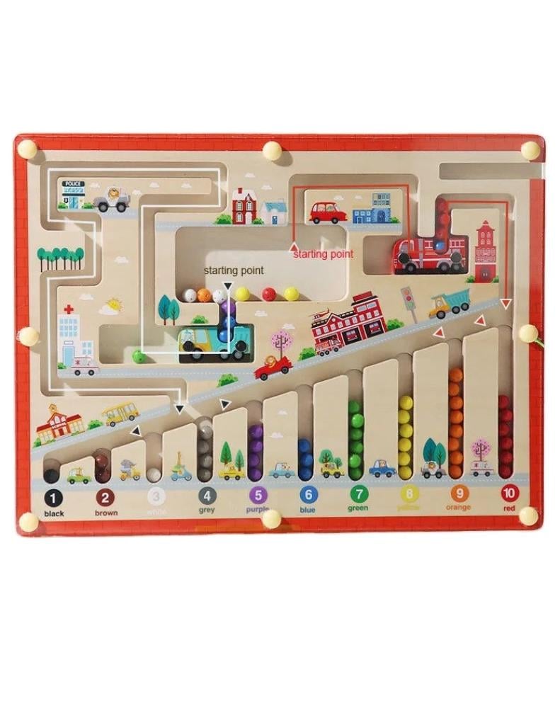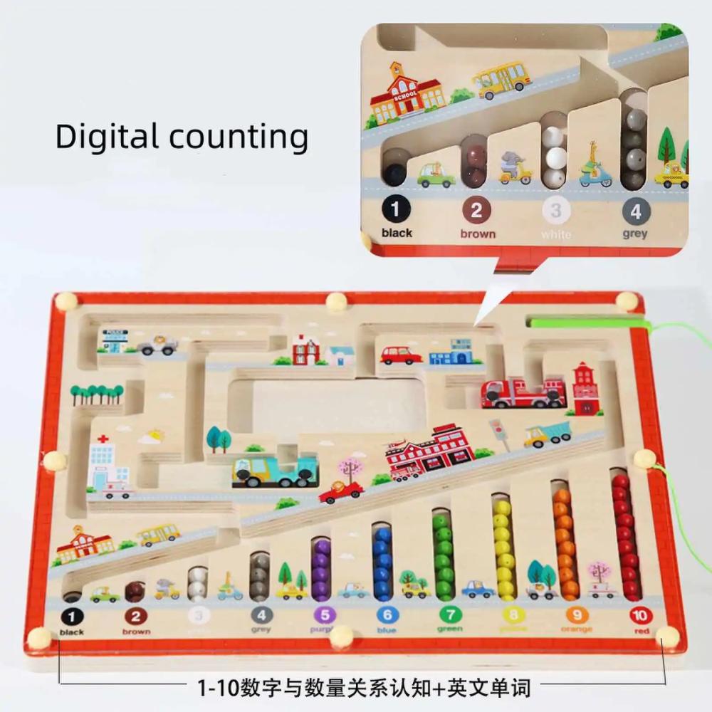 •تساعد ايضًا على تعليم العد والأرقام وتدريب عضلات اليد الدقيقة عبر استخدام القلم المغناطيسي ونقل الكرات عبر المتاهه الى المكان الصحيح .