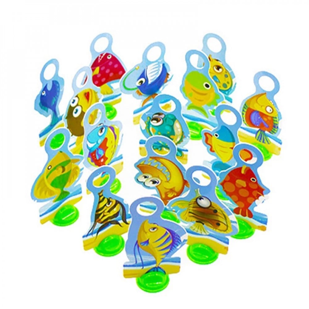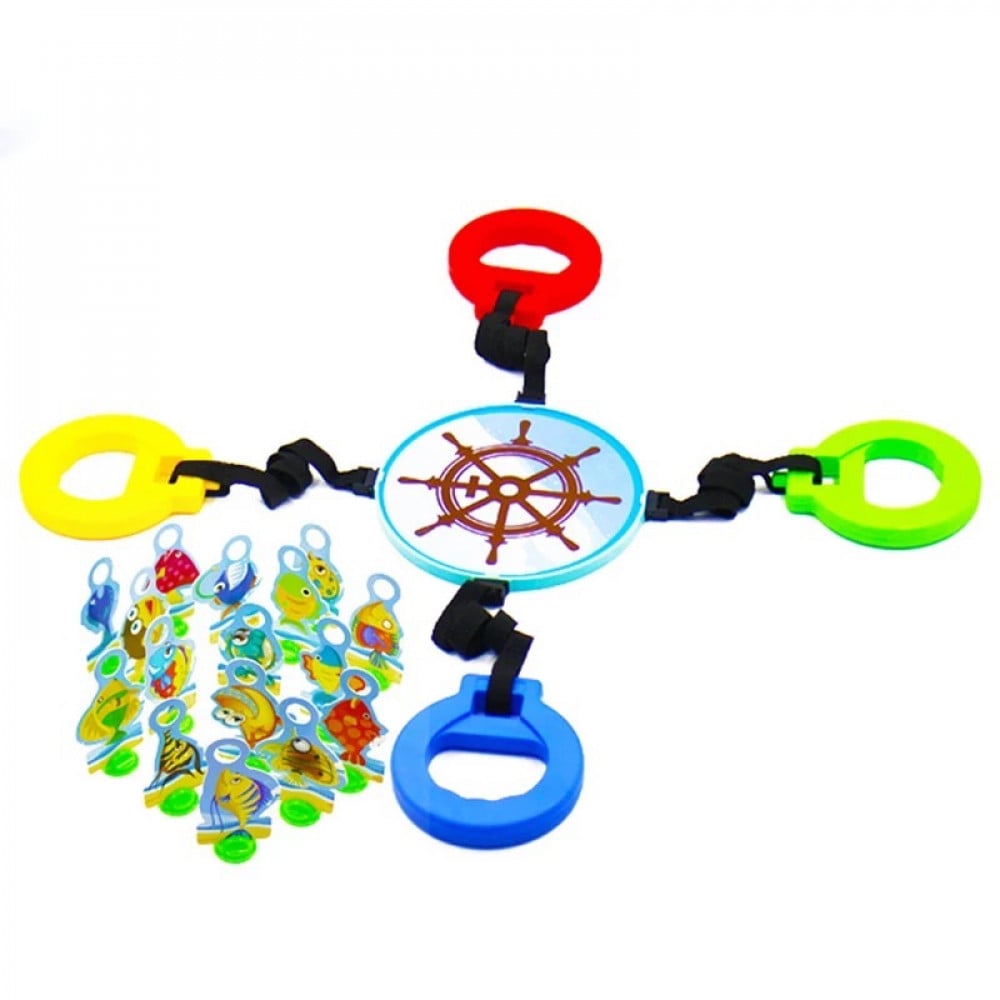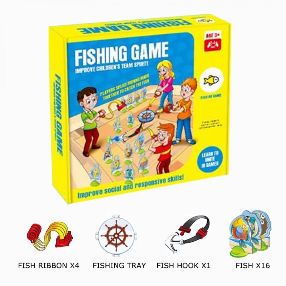 1/ يقوم اللاعب أولاً بتجميع طبق الصيد وخطاف السمك وحزام اللعبة، ويضع السمكة الصغيرة في المنتصف، ويقف كل لاعب في موضعه الخاص ويبدأ اللعبة