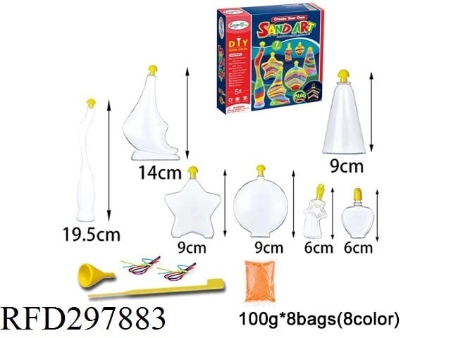 لعبة فن الرمل عبوات شفافة لتعبئة الرمل بفن إن هذه المجموعة الشيقة تمكنكِ من صنع فنون جميلة من الرمل الملون لتزيين المنزل أو غرفالأطفال. لعبة إبداعية ومسلية.