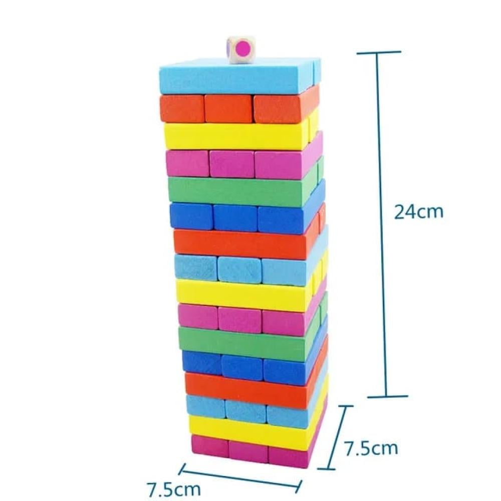 تحتوي على: مجموعة من القطع الخشبية الملونة مع نرد .